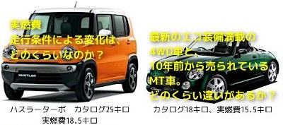燃費 実燃費(走行条件による変化)について 別サイトに連載しているように、カタログ燃費は詐欺的数字 なので、 当社が『実燃費』として使っている数字は、多くのユーザー様のサンプルから平均を出しています。ただ、実は同じ車種、同じ年式でも、いただくサンプル燃費には、かなりの幅があります。ユ... 燃費